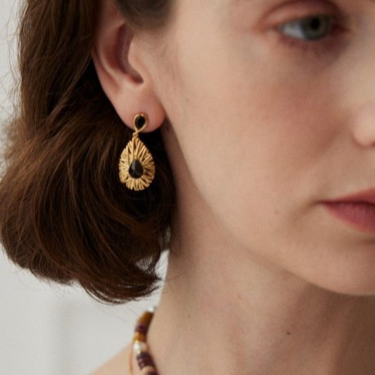 Vermeil Textured Black Zircon Teardrop EarringsRegular price $89.00 USDRegular priceUnit price / per-