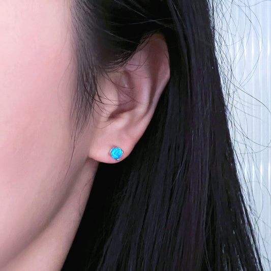 Simple Bright Opal Sterling Silver Earrings