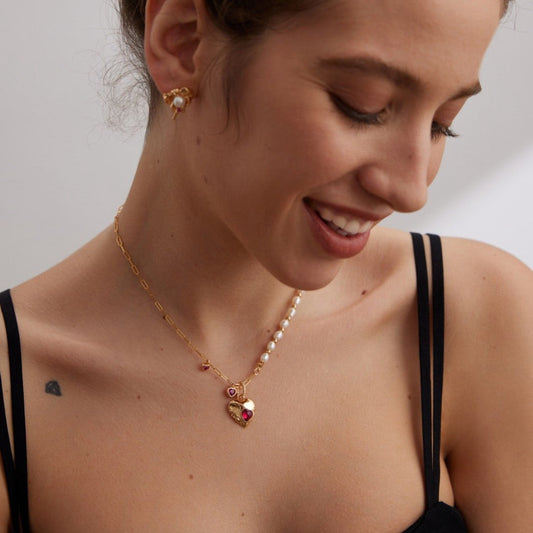 Christmas Pearl Ruby Heart Vermeil Pendant Necklace