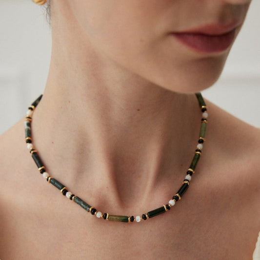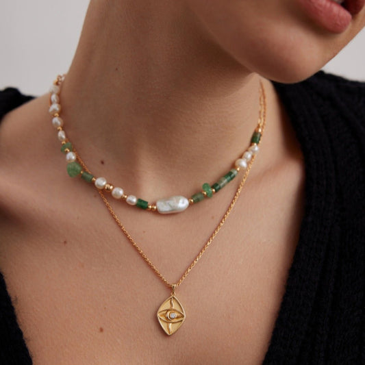 Handcrafted Jade Stones Pearl Vermeil Necklace