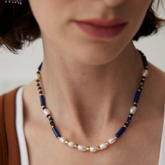 Asymmetrical Lapis Lazuli Pearl Vermeil Necklace