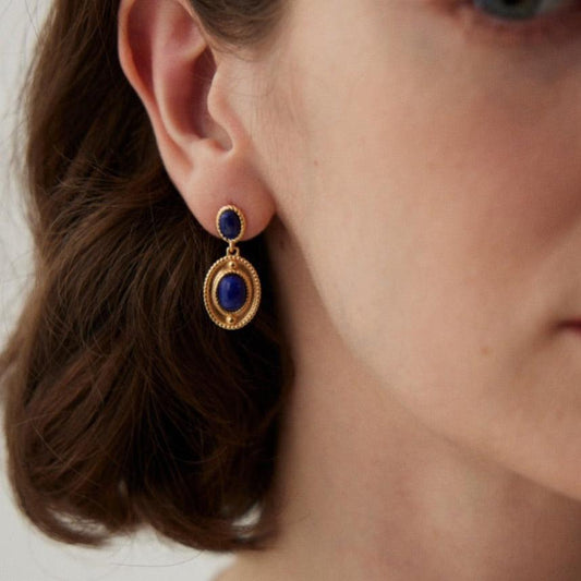 18K Gold Plated Lapis Lazuli Vintage Drop Earrings
