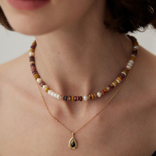 Vermeil Mookaite Jasper Pearl Gradient Necklace