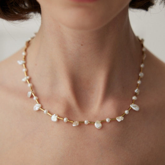 Bamboo Rhythm Natural Baroque Pearl Vermeil Necklace