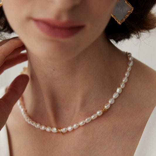 Vine Kiss Natural Baroque Pearl Vermeil Necklace