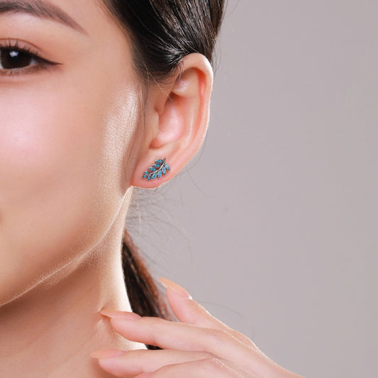 Sterling Silver Plant Leaf Turquoise Earrings