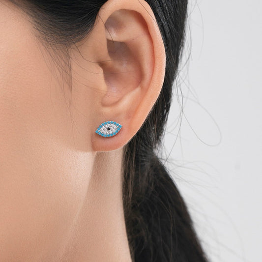 Sterling Silver Micro Pave Turquoise Devil's Eye Earrings